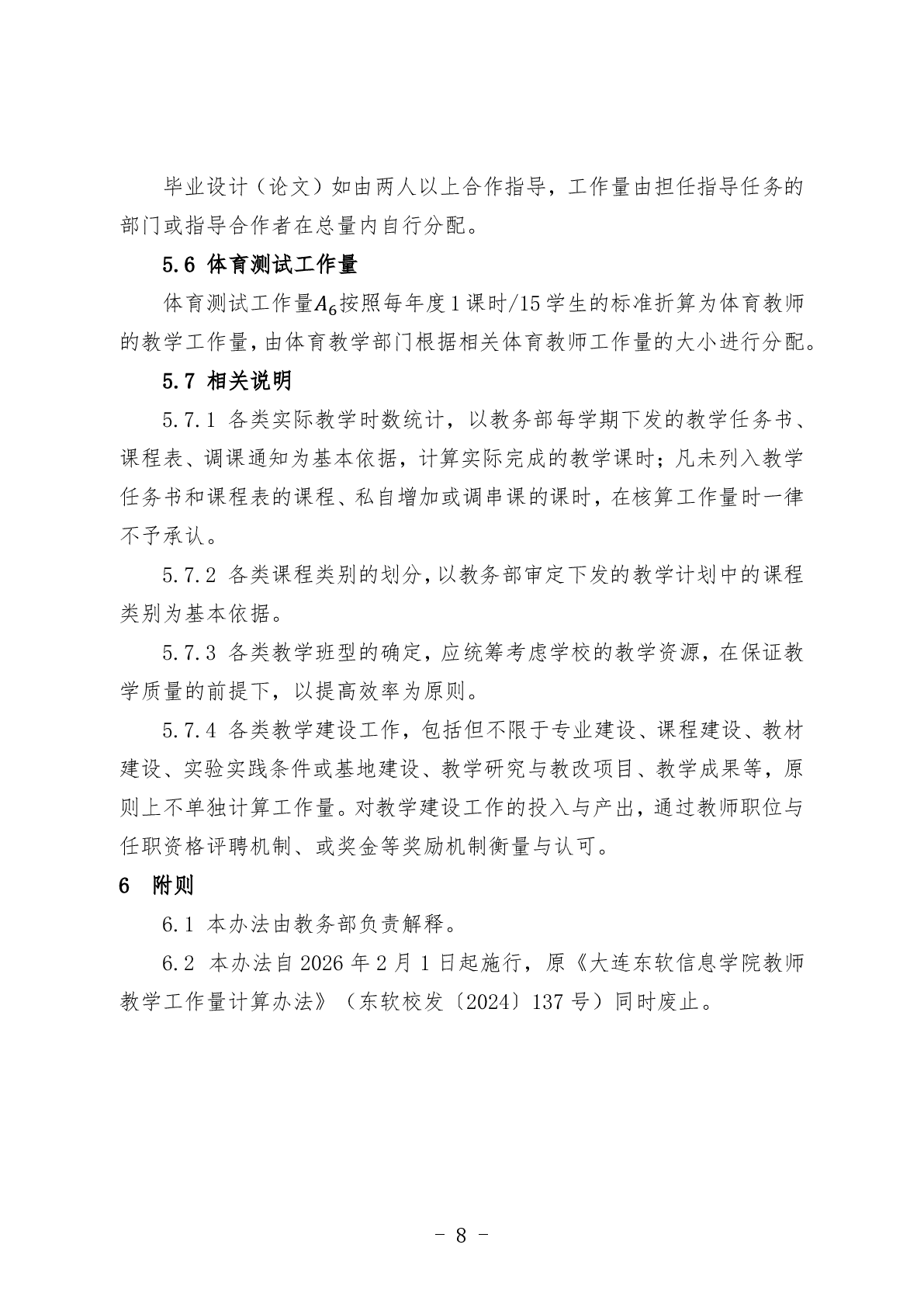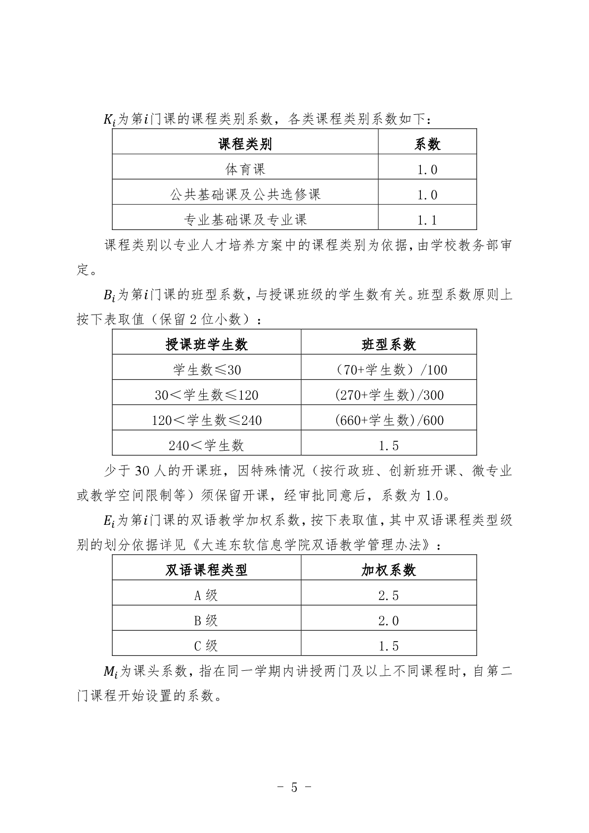 大连东软信息学院教师教学工作量计算办法